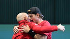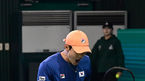 [OSEN=올림픽공원, 최규한 기자] 4일 서울 방이동 올림픽공원 실내테니스장에서 ‘2023 데이비스컵 최종 본선 진출전’(4단 1복식) 한국과 벨기에의 경기가 열렸다.1단식을 따낸 벨기에 지주 베리스가 요한 반 헤르크 감독과