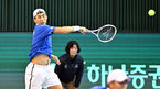 [OSEN=올림픽공원, 민경훈 기자] 5일 서울 방이동 올림픽공원 실내테니스장에서 2023년 데이비스컵 파이널스(본선) 진출전(4단 1복식) 한국과 벨기에의 경기가 열렸다.이 경기에서 송민규(KDB산업은행·147위 이하 복식 랭킹)-남