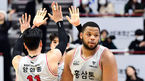 [OSEN=수원, 조은정 기자]6일 오후 수원 KT소닉붐아레나에서 '2022-2023 SKT 에이닷 프로농구' 수원 KT와 안양 KGC의 경기가 열렸다.이날 KGC는 KT를 상대로 87-84 승리를 거뒀다.경기 종료 후 KGC가 승리를 기뻐하고 있다. 2023.02.06 /cej@osen.co.