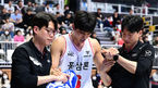[OSEN=수원, 조은정 기자]6일 오후 수원 KT소닉붐아레나에서 '2022-2023 SKT 에이닷 프로농구' 수원 KT와 안양 KGC의 경기가 열렸다.2쿼터 KGC 박지훈이 다리 부상으로 고통스러워하고 있다. 2023.02.06 /cej@osen.co.kr