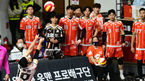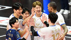 [OSEN=안산, 조은정 기자] 8일 오후 안산 상록수체육관에서 프로배구 ‘도드람 2022-2023 V리그’ 남자부 OK금융그룹과 우리카드의 경기가 열렸다.4세트 우리카드가 득점에 기뻐하고 있다. 2023.02.08 /cej@osen.co.kr