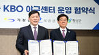 [OSEN=최규한 기자] 9일 오후 서울 도곡동 KBO회관에서 ‘기장·보은·횡성 - KBO 야구센터 운영 협약식’이 열렸다.협약식에 참석한 김명기 횡성군수(왼쪽)과 허구연 KBO 총재가 협약서와 함께 기념촬영을 하고 있다. 2