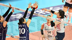 [OSEN=김천, 이석우 기자] 9일 김천실내체육관에서 도드람 2022-2023 V리그 한국도로공사와 GS 칼텍스의 경기가 열렸다.GS 칼텍스 유서연이 한국도로공사 박정아, 배유나의 블로킹을 뚫고 스파이크를 날리고 있다. 2023.02.09 / foto0307@ose