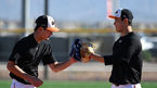 [OSEN=메사(미국 애리조나주), 지형준 기자] 11일(한국시간) 미국 애리조나주 메사에 위치한 벨 뱅크 파크에 스프링캠프를 차린 한화 이글스.한화 김서현, 문동주가 캐치볼을 마치고 글러브를 맞대고 있다. 2023.02.11 /jpnews@osen.co.kr