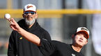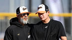 [OSEN=메사(미국 애리조나주), 지형준 기자] 11일(한국시간) 미국 애리조나주 메사에 위치한 벨 뱅크 파크에 스프링캠프를 차린 한화 이글스.한화 로사도 코치가 훈련에 복귀한 김서현과 이야기를 나누고 있다. 2023.02.11 /jpnews@osen.co