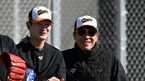 [OSEN=메사(미국 애리조나주), 지형준 기자] 11일(한국시간) 미국 애리조나주 메사에 위치한 벨 뱅크 파크에 스프링캠프를 차린 한화 이글스.한화 오선진, 정은원이 수비 훈련을 하며 즐거워하고 있다. 2023.02.11 /jpnews@osen.co.kr