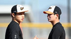 [OSEN=메사(미국 애리조나주), 지형준 기자] 11일(한국시간) 미국 애리조나주 메사에 위치한 벨 뱅크 파크에 스프링캠프를 차린 한화 이글스.한화 김서현, 문동주가 이야기를 나누고 있다. 2023.02.11 /jpnews@osen.co.kr