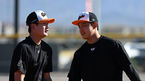 [OSEN=메사(미국 애리조나주), 지형준 기자] 11일(한국시간) 미국 애리조나주 메사에 위치한 벨 뱅크 파크에 스프링캠프를 차린 한화 이글스.한화 김서현이 문동주와 이야기를 나누고 있다. 2023.02.11 /jpnews@osen.co.kr