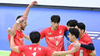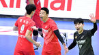 [OSEN=수원, 이대선 기자] 12일 오후 경기도 수원체육관에서 ‘2022~23 도드람 V리그’ 한국전력과 우리카드의 경기가 열렸다.1세트 한국전력 선수들이 득점에 환호하고 있다. 2023.02.12 / sunday@osen.co.kr
