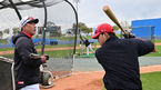 [OSEN=투손(미국 애리조나주), 지형준 기자] 12일(한국시간) 미국 애리조나주 투손 키노 스포츠 컴플렉스에서 열린 KIA 타이거즈 스프링캠프 훈련.KIA 이범호 코치가 변우혁에 타격 자세를 고쳐주고 있다. 2023.02.12 /jpnews@osen.co.kr