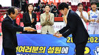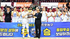 [OSEN=부산, 이석우 기자] 13일 부산 사직실내체육관에서 신한은행 SOL 2022-2023 여자프로농구 부산 BNK 썸과 아산 우리은행의 경기가 열렸다.정규리그 우승을 차지한 아산 우리은행 위성우 감독이 우승 시상식을 갖고 이병완 총재와