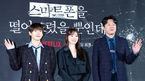 [OSEN=민경훈 기자] 15일 오후 서울 광진구 자양동 롯데시네마 건대입구에서 넷플릭스 ‘스마트폰을 떨어뜨렸을 뿐인데’ 제작보고회가 진행됐다.배우 임시완, 천우희, 김희원이 기자간담회에서 포즈를 취하고 있다. 2023.02