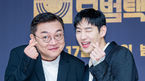 [OSEN=민경훈 기자] 17일 오후 서울 양천구 목동 SBS 방송센터 SBS홀에서 SBS 새 금토드라마 '모범택시2' 제작발표회가 열렸다.배우 이제훈과 김의성이 무대 위에서 포토타임을 갖고 있다. 2023.02.17 / rumi@osen.co.kr