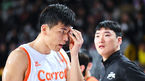 [OSEN=창원, 이석우 기자] 17일 창원 체육관에서 2022-2023 SKT 에이닷 프로농구 창원 LG와 고양 캐롯의 경기가 열렸다.고양 캐롯 박진철이 왼쪽 눈썹부위가 찢어지는 부상을 당해 코트를 나서고 있다. 2023.02.17 / foto0307@osen.co.kr