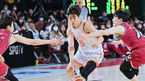 [OSEN=창원, 이석우 기자] 17일 창원 체육관에서 2022-2023 SKT 에이닷 프로농구 창원 LG와 고양 캐롯의 경기가 열렸다.고양 캐롯 전성현이 창원 LG 아셈 마레이, 윤원상, 김준일의 집중마크를 피해 볼을 잡고 있다. 2023.02.17 / foto0307@osen.