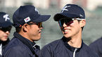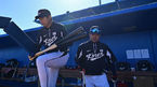 [OSEN=투손(미국 애리조나주), 지형준 기자] 이강철 감독이 이끄는 한국 야구대표팀이 17일(한국시간) 미국 애리조나주 투손 키노 스포츠컴플렉스에서 훈련을 가졌다.대표팀 이지영, 김혜성이 웜업을 하며 장난을 치고 있다. 2023.02