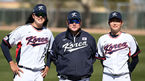 [OSEN=투손(미국 애리조나주), 지형준 기자] 이강철 감독이 이끄는 한국 야구대표팀이 17일(한국시간) 미국 애리조나주 투손 키노 스포츠컴플렉스에서 훈련을 가졌다.대표팀 진갑용 코치가 김원중, 박세웅과 포즈를 취하고 있다. 2