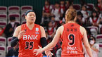[OSEN=창원, 이석우 기자] 19일 창원체육관에서 신한은행 SOL 2022-2023 여자프로농구 부산 BNK 썸과 인천 신한은행의 경기가 열렸다.부산 BNK 썸 김한별이 골을 성공시키고 김시온과 하이파이브를 하고 있다. 2023.02.19 / foto0307@osen.co.kr