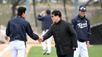 [OSEN=투손(미국 애리조나주), 지형준 기자] 이강철 감독이 이끄는 한국 야구대표팀이 21일(한국시간) 미국 애리조나주 투손 키노 스포츠컴플렉스에서 훈련을 가졌다.KBO 허구연 총재가 대표팀 김민호 코치와 인사를 나누고 있다.