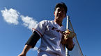 [OSEN=메사(미국 애리조나주), 지형준 기자] 24일(한국시간) 미국 애리조나주 메사에 위치한 벨 뱅크 파크에 스프링캠프를 차린 한화 이글스.한화 문동주가 불펜 피칭을 마치고 미소짓고 있다. 2023.02.24 /jpnews@osen.co.kr
