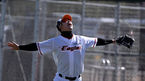 [OSEN=메사(미국 애리조나주), 지형준 기자] 24일(한국시간) 미국 애리조나주 메사에 위치한 벨 뱅크 파크에 스프링캠프를 차린 한화 이글스.한화 남지민이 불펜 피칭을 마치고 땀을 닦고 있다. 2023.02.24 /jpnews@osen.co.kr