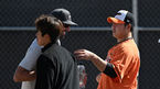 [OSEN=메사(미국 애리조나주), 지형준 기자] 24일(한국시간) 미국 애리조나주 메사에 위치한 벨 뱅크 파크에 스프링캠프를 차린 한화 이글스.한화 이원석이 캠프를 찾은 카펜터와 인사를 나누고 있다. 2023.02.24 /jpnews@osen.co.kr