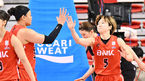 [OSEN=울산, 이석우 기자] 24일 울산 동천체육관에서 신한은행 SOL 2022-2023 여자프로농구 부산 BNK 썸과 용인 삼성생명의 경기가 열렸다. 부산 BNK 썸 안혜지가 3쿼터 마지막 골을 성공시키고 김한별과 하이파이브를 하고 있다. 2023.02.
