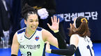 [OSEN=수원, 이대선 기자] 25일 오후 경기도 수원체육관에서 ‘2022~23 도드람 V리그’ 여자부 현대건설과 IBK기업은행의 경기가 열렸다.1세트 IBK기업은행 산타나가 득점에 환호하고 있다. 2023.02.25 / sunday@osen.co.kr