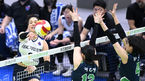 [OSEN=수원, 이대선 기자] 25일 오후 경기도 수원체육관에서 ‘2022~23 도드람 V리그’ 여자부 현대건설과 IBK기업은행의 경기가 열렸다.1세트 IBK기업은행 최정민과 김현정이 블로킹을 시도하고 있다. 2023.02.25 / sunday@osen.co.kr