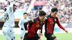 [OSEN=서울월드컵경기장, 최규한 기자] 25일 오후 서울 성산동 서울월드컵경기장에서 ‘하나원큐 K리그1 2023’ FC서울과 인천 유나이티드의 경기가 열렸다.전반 FC서울 황의조와 나상호가 돌파를 펼치고 있다. 2023.02.25 / dreamer