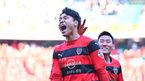 [OSEN=포항, 이석우 기자] 26일 포항 스틸야드에서 하나원큐 K리그1 2023 포항 스틸러스와 대구FC의 경기가 열렸다. 포항 스틸러스 이호재가 경기 종료 후 두팔을 벌려 승리 기쁨을 만끽하고 있다. 2023.02.26 / foto0307@osen.co.kr