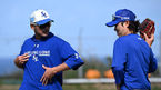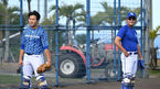[OSEN=오키나와(일본), 이대선 기자] 28일 일본 오키나와 온나손 아카마 볼파크에서 삼성 라이온즈 스프링캠프가 진행됐다.삼성 이병헌과 김재성이 내야수 훈련을 바라보고 있다. 2023.02.28 /sunday@osen.co.kr