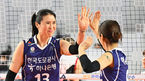 [OSEN=김천, 이석우 기자] 28일 김천실내체육관에서 도드람 2022-2023 V리그 한국도로공사와 KGC인삼공사의 경기가 열렸다. 한국도로공사 정대영이 득점을 올리고 이윤정과 하이파이브를 하고 있다. 2023.02.28 / foto0307@osen.co.kr