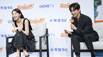 [OSEN=김성락 기자] 28일 오후 서울 구로구 현대백화점 디큐브시티에서 지니TV 오리지널 ‘딜리버리맨’ 제작발표회가 열렸다. 배우 방민아, 김민석이 취재진의 질문에 대답하고 있다. 2023.02.28 /ksl0919@osen.co.kr