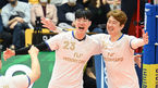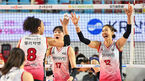 [OSEN=김천, 이석우 기자] 28일 김천실내체육관에서 도드람 2022-2023 V리그 한국도로공사와 KGC인삼공사의 경기가 열렸다. KGC인삼공사 한송이가 블로킹으로 득점을 올리고 정호영, 엘리자벳과 기쁨을 나누고 있다. 2023.02.28 / foto0307@o
