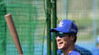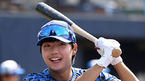 [OSEN=오키나와(일본), 이대선 기자] 1일 일본 오키나와 온나손 아카마 볼파크에서 삼성 라이온즈 스프링캠프가 진행됐다.삼성 김현준이 타격 훈련을 하며 미소짓고 있다. 2023.03.01 /sunday@osen.co.kr