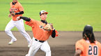 [OSEN=오키나와(일본), 이대선 기자] 2일 일본 오키나와 우루마 구시카와구장에서 롯데 자이언츠와 한화 이글스의 연습경기가 열렸다.2회초 수비를 마친 롯데 반즈가 더그아웃으로 가며 동료들과 하이파이브를 하고 있다. 2023.03.02