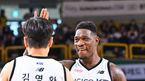 [OSEN=창원, 이석우 기자] 4일 창원 체육관에서 2022-2023 SKT 에이닷 프로농구 창원 LG와 수원 kt의 경기가 열렸다. 수원 kt 레스터 프로스퍼가 김영환과 하이파이브를 하고 있다. 2023.03.04 / foto0307@osen.co.kr