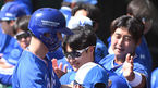 [OSEN=오키나와(일본), 이대선 기자] 4일 일본 오키나와 나하 셀룰러 스타디움에서 요미우리 자이언츠와 삼성 라이온즈의 경기가 진행 됐다.7회초 무사 만루 삼성 이원석의 병살타 때 홈을 밟은 구자욱이 더그아웃에서 동료들과