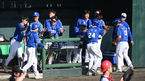 [OSEN=오키나와(일본), 이대선 기자] 5일 일본 오키나와 킨 구장에서 KIA 타이거즈와 삼성 라이온즈의 경기가 열렸다.9회초 2사 만루에서 삼성 이해승(유니폼 이름은 이병헌)의 싹쓸이 3루타로 홈을 밟은 이재현, 김태훈, 이성규가