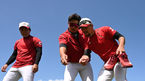 [OSEN=오키나와(일본), 이대선 기자] SSG는 6일 일본 오키나와 온나손 아카마 구장에서 열린 삼성 라이온즈와 연습경기에서 5-6으로 졌다.경기에 앞서 SSG 맥카티가 캐치볼을 마치고 동료와 하이파이브를 하고 있다. 2023.03.06 /sunday@os