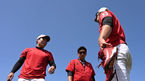 [OSEN=오키나와(일본), 이대선 기자] SSG는 6일 일본 오키나와 온나손 아카마 구장에서 열린 삼성 라이온즈와 연습경기에서 5-6으로 졌다.경기에 앞서 SSG 맥카티가 동료들과 장난을 치고 있다. 2023.03.06 /sunday@osen.co.kr