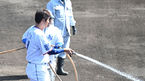 [OSEN=오키나와(일본), 이대선 기자] SSG는 6일 일본 오키나와 온나손 아카마 구장에서 열린 삼성 라이온즈와 연습경기에서 5-6으로 졌다.클리닝 타임 때 삼성 강민호가 물을 뿌리고 있다. 2023.03.06 /sunday@osen.co.kr