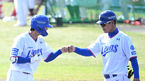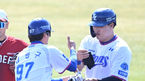 [OSEN=오키나와(일본), 이대선 기자] SSG는 6일 일본 오키나와 온나손 아카마 구장에서 열린 삼성 라이온즈와 연습경기에서 5-6으로 졌다.5회말 무사 1,3루에서 삼성 김현준이 적시타를 치고 강봉규 코치와 하이파이브를 하고 있다.