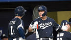 [OSEN=오사카, 손용호 기자] 6일 오사카 교세라돔에서 2023 WBC(월드베이스볼클래식) 에 참가한 한국대표팀이 오릭스 버팔로스와 연습경기를 가졌다.한국 1회초 2사 1루 김한수가 안타를 치고 웃고 있다.2023.03.06/spjj@osen.co.kr