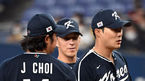 [OSEN=오사카, 손용호 기자] 7일 오사카 교세라돔에서 2023 WBC(월드베이스볼클래식) 에 참가한 한국 야구대표팀이 한신 타이거즈와 연습경기를 가졌다.5회말 투수 교체때 3루수 최정이 에드먼의 수비를 칭찬하자 에드먼이 ‘고맙