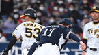 [OSEN=오사카, 손용호 기자] 7일 오사카 교세라돔에서 2023 WBC(월드베이스볼클래식) 에 참가한 한국 야구대표팀이 한신 타이거즈와 연습경기를 가졌다.6회말 2사 1루 한신 시마다의 빗맞은 타구가 안타가 되고 있다.2023.03.07/spjj@osen.
