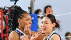 [OSEN=김천, 이석우 기자] 7일 김천실내체육관에서 도드람 2022-2023 V리그 한국도로공사와 흥국생명의 경기가 열렸다. 한국도로공사 배유나가 득점을 올리고 캣벨과 하이파이브를 하고 있다. 2023.03.07 / foto0307@osen.co.kr