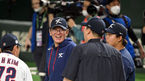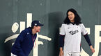 [OSEN=도쿄, 손용호 기자] 8일 도쿄 도쿄돔에서 2023 WBC(월드베이스볼클래식) 에 참가한 한국 야구대표팀이 공식 훈련을 가졌다.한신과의 경기서 온탕과 냉탕을 오간 정우영의 엉덩이를 이강철 감독이 걷어차고 있다.2023.03.08/spjj@os