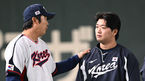 [OSEN=도쿄, 손용호 기자] 8일 도쿄 도쿄돔에서 2023 WBC(월드베이스볼클래식) 에 참가한 한국 야구대표팀이 공식 훈련을 가졌다.외야에서 한신 경기에서 호투한 김원중과 이강철 감독이 이야기를 나누고 있다.2023.03.08/spjj@osen.co.kr